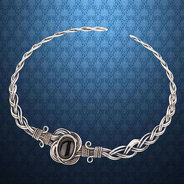 This necklace pairs with the Celtic Onyx knot bracelet #201294 and is a great compliment to any ensemble. Made of a stainless steel wire with a faux black onyx stone attached within the Celtic knot. Adjusts to fit most sizes.